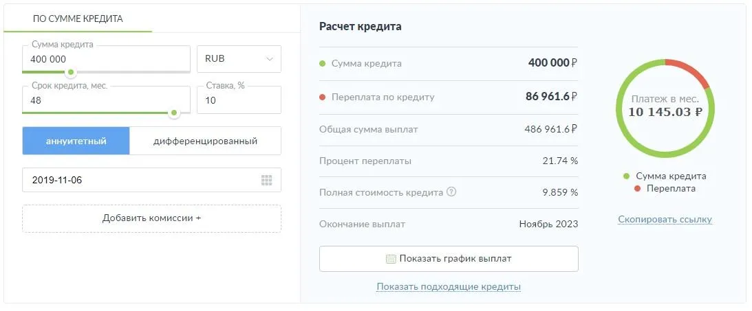 Расчет кредита