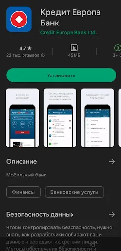 Одно из удобств каталога – пользователь может скачать мобильное приложение Кредит Европа Банк, оно автоматически установится. Останется открыть его и авторизоваться.