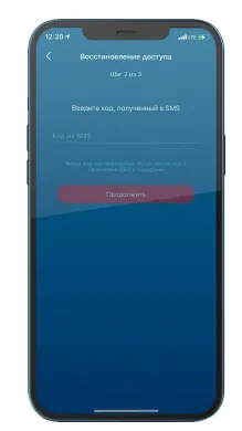 3. Активируйте кнопку «Продолжить», на указанный номер будет отправлен одноразовый пароль;