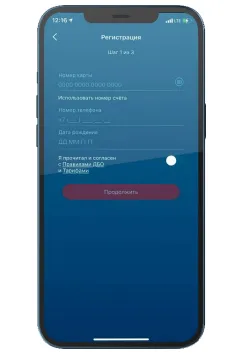 1. Укажите номер карты или счета, мобильный номер, применяемый при регистрации, а также дату рождения;