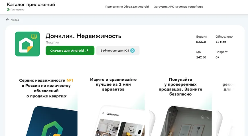8. Загрузите в каталоге Сбера – сервис называется «Домклик. Недвижимость»;