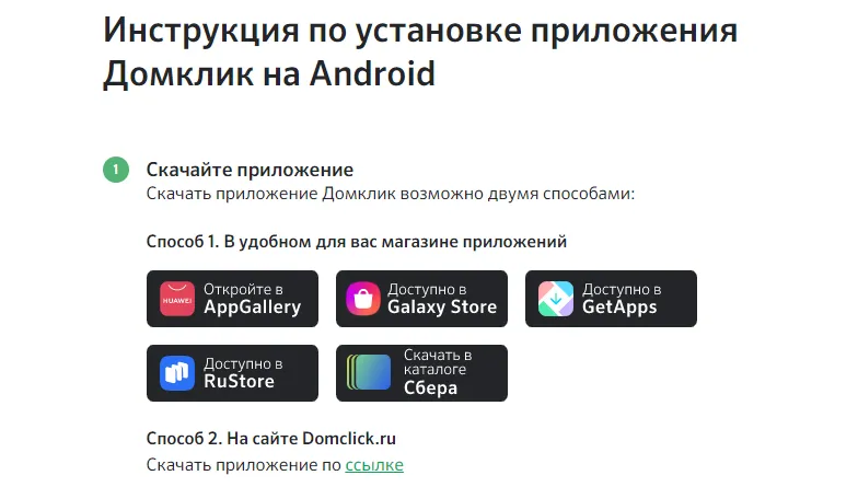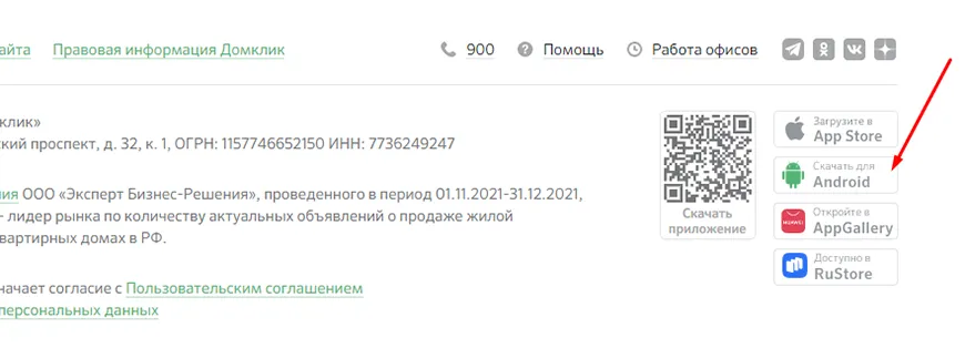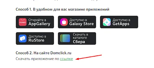 9. Если ни один из Store не подходит, воспользуйтесь прямой загрузкой с сайта Domclick.ru – перейдите по ссылке в разделе «Способ 2».