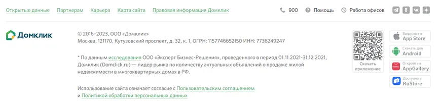 1. Зайдите на портал Домклик и пролистайте страницу вниз до конца;