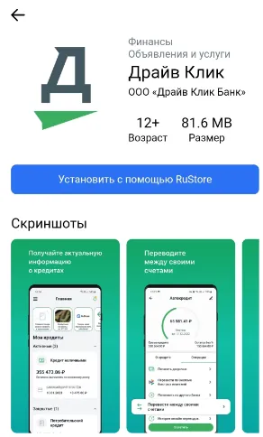 Чтобы скачать приложение Драйв Клик Банк для андроид в RuStore, следуйте инструкции: