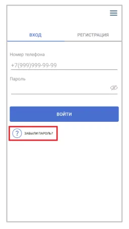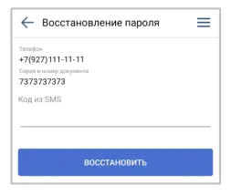 Неоднократный ввод неправильного пароля приводит к блокировке доступа в приложение на 10 мин. Если пользователь забыл регистрационные данные, пароль можно восстановить, выполнив ряд действий: