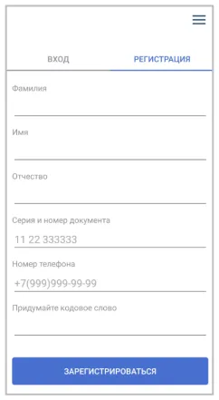 2. Укажите ФИО, серию и номер паспорта, мобильный телефон, кодовое слово и нажмите «Зарегистрироваться»;