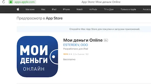 Также переход в Google Play возможен со страницы интернет-банка – пройдите авторизацию и нажмите кнопку «Доступно в Google Play». В карточке программы не упоминается название банка – визуально нельзя понять, что продукт является официальным.