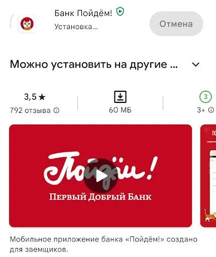 Чтобы скачать приложение банк Пойдем! бесплатно, нужен Android 5.0 или более поздней версии. Загрузка осуществляется через авторизованный каталог Google Play по инструкции: