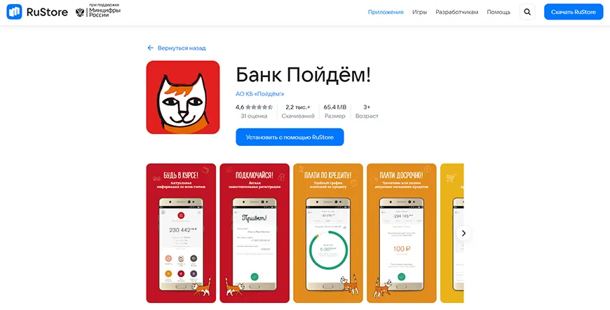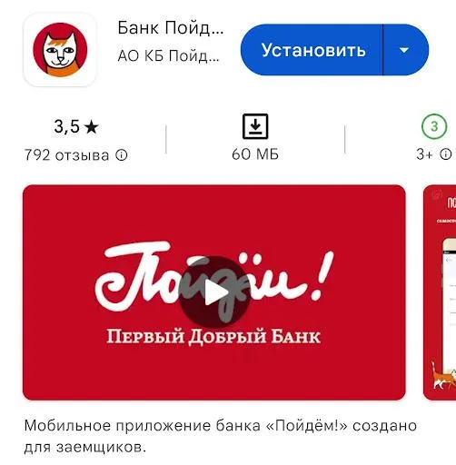 Банк Пойдем! – приложение, созданное для удобства клиентов и обеспечения круглосуточного доступа к финансовым инструментам и продуктам в дистанционном формате. Установить сервис могут пользователи андроид и айфон – в отношении компании не вводились ограничения, поэтому продукты доступны к загрузке в Google Play и App Store.