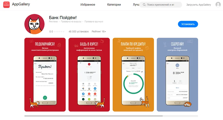 Загрузка и установка программного обеспечения Пойдем! банка осуществляется только в специализированных Store – процесс полностью автоматизирован и не требует дополнительных усилий пользователя. Помимо Google Play для скачивания можно использовать другие фирменные каталоги: