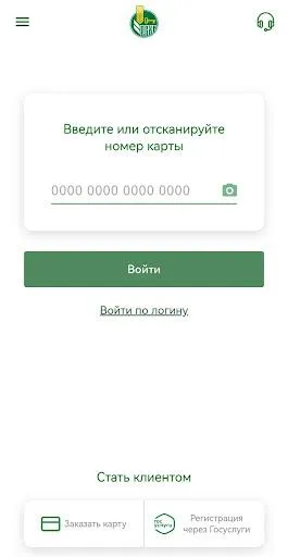 1. Откройте мобильный банк, укажите номер карты (можно отсканировать) либо нажмите «Войти по логину»/«Регистрация через Госуслуги»;