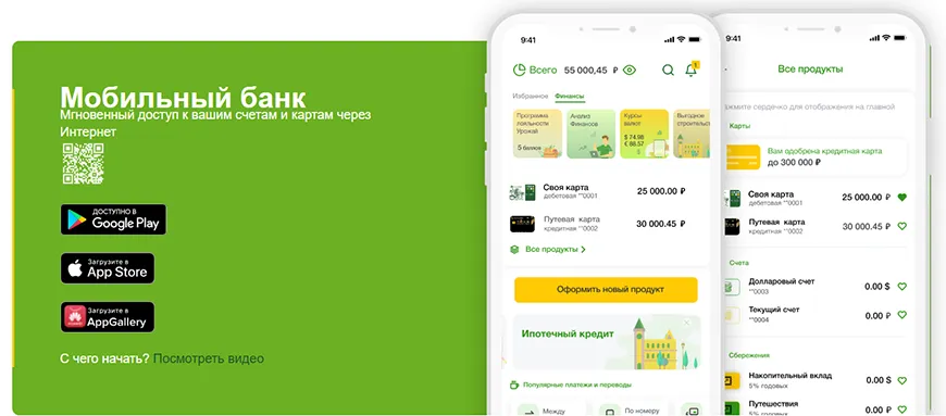 В мобильном банке можно выпустить цифровую карту, оплачивать покупки по QR-коду, пополнять счета без комиссии, подключить Push-уведомления вместо платных SMS.