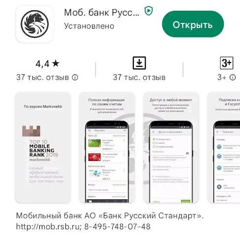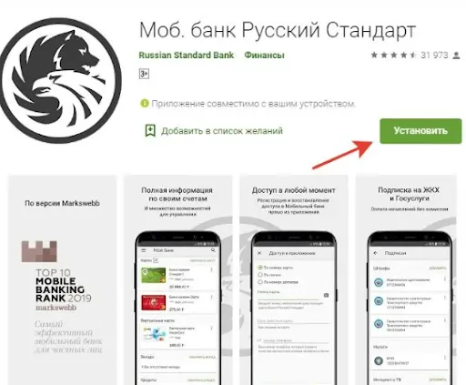 Важно: в Google Play и AppGalery приложение называется Моб. банк Русский Стандарт.