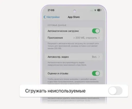 Если мобильное приложение Уралсиб Банк установлено на айфон ранее, стоит запретить гаджету сгружать неиспользуемые программы. Для этого: