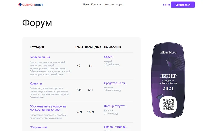 Размещена по ссылке https://idea.sovcombank.ru/forum/. Воспользоваться функционалом можно только после авторизации в личном кабинете.