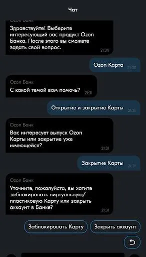 Удалить виртуальную карту Озон самостоятельно нельзя. Через мобильное приложение пользователь может заблокировать карточный счет. Для закрытия продукта нужно обращаться к специалистам банка через чат или горячую линию.