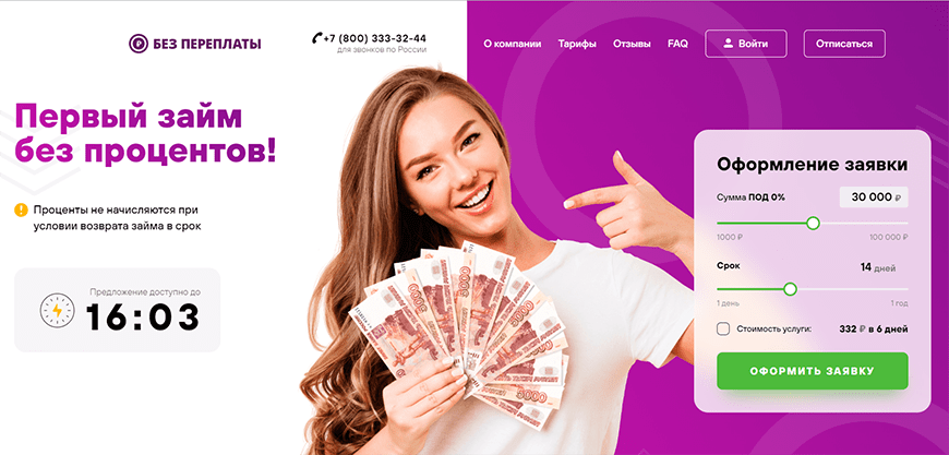 «Без переплаты» помогает найти наиболее подходящее предложение в МФО для оформления микрозайма онлайн. Услуга платная, предполагает списания каждые шесть дней. Управлять ей, получать индивидуальные предложения можно в личном кабинете.