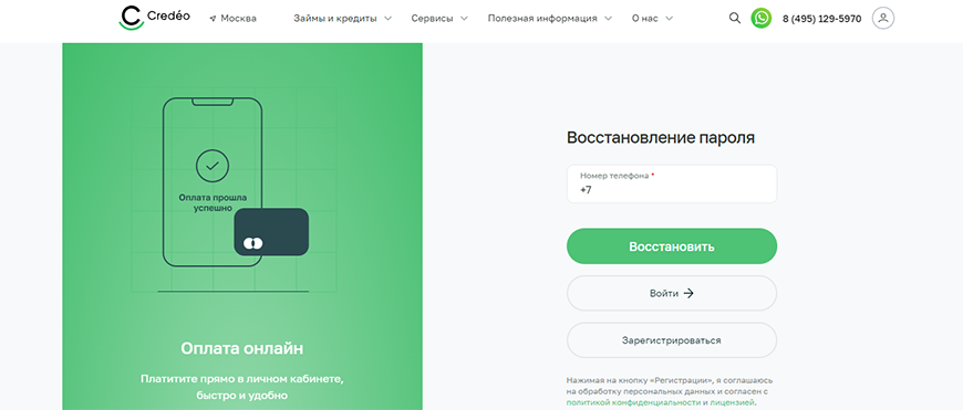 Личный кабинет Credeo