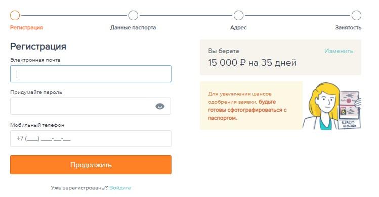 1. Вход на официальную страницу МФК – ezaem.ru.