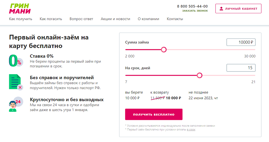 1. Необходимо знать сумму платежа и остаток долга. Проверить эти данные можно не только на горячей линии ГринМани, но и в личном кабинете. Операторы проверят сведения о задолженности и уточнят график выплат.