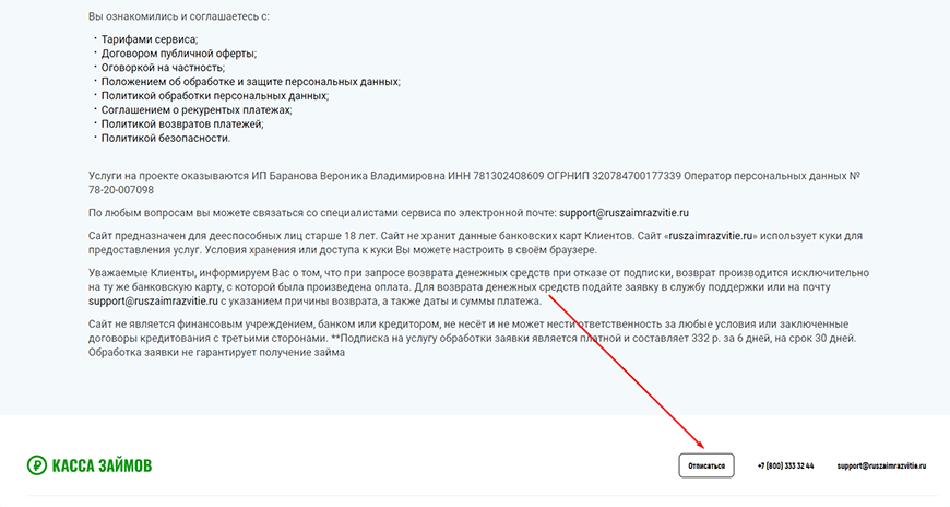 Как отписаться от подписок и платных услуг ruszaimrazvitie?