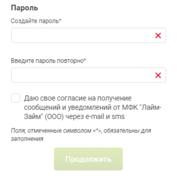 2. На этом же этапе указывается пароль. Вход в личный кабинет LIME по паролю и номеру телефона производится каждый раз.