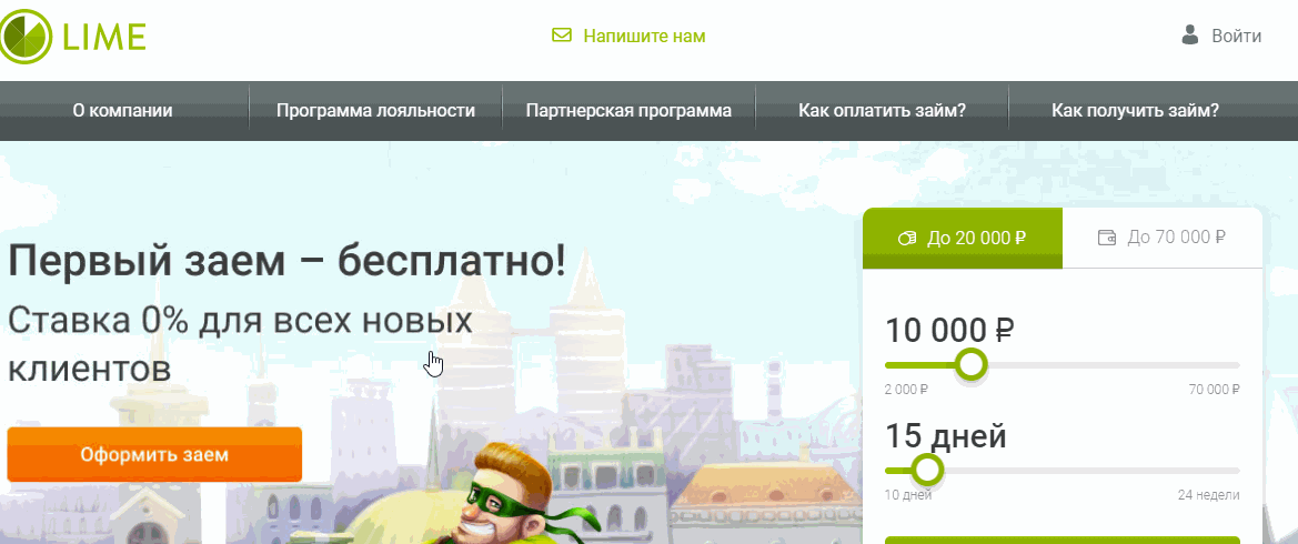 Лайм займ - вход в личный кабинет и регистрация для получения займов, как оплатить или продлить займ.