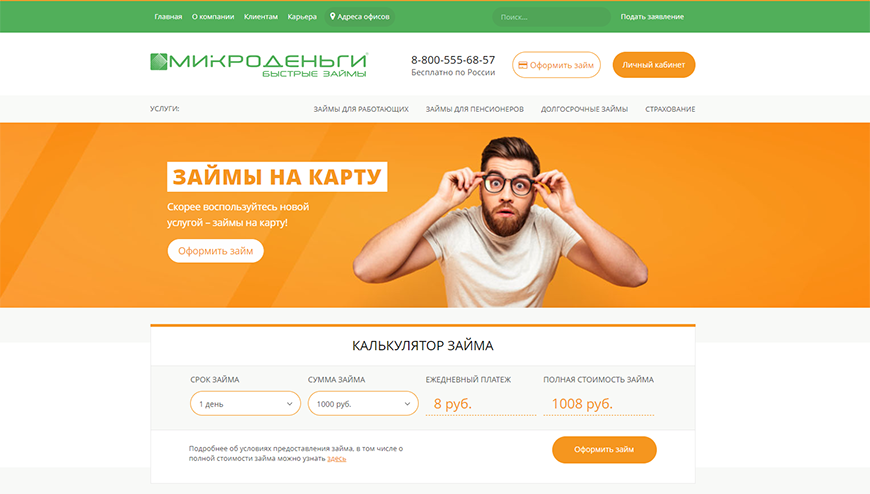 • горячая линия МФО Микроденьги (бесплатно для абонентов из России) - 8(800) 555-68-57.