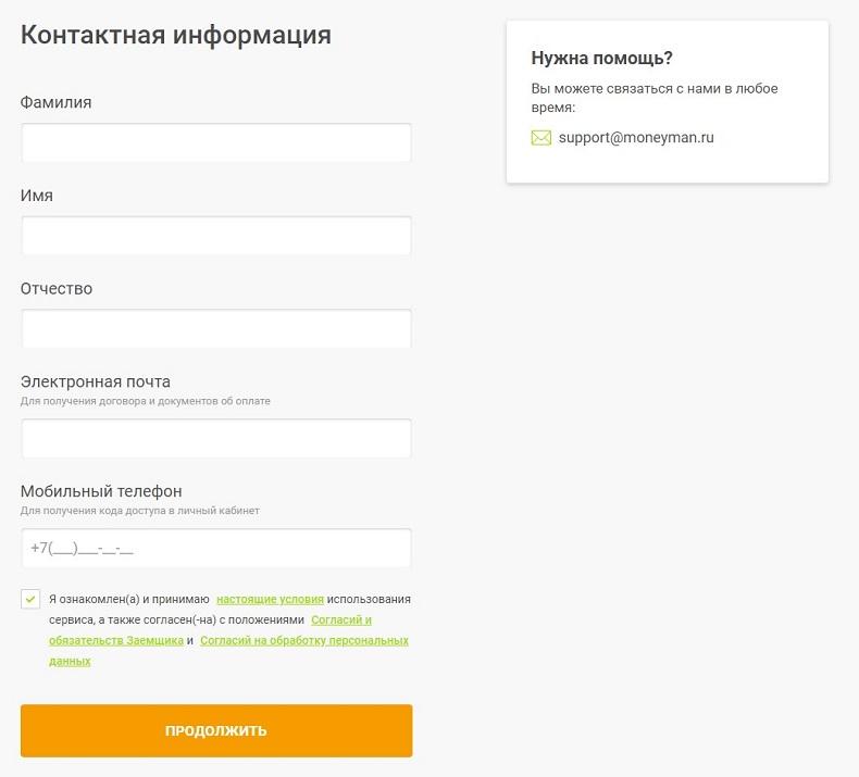 1. Зайти на официальный сайт МФО – moneyman.ru.