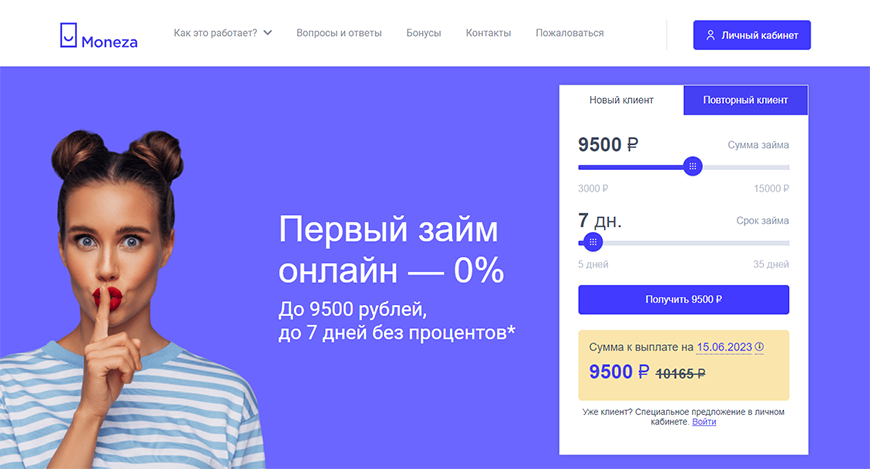 Как погасить займ досрочно в Moneza?