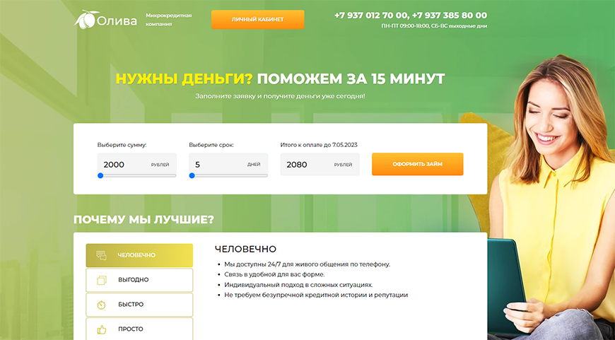 Здесь можно посмотреть как зарегистрироваться и войти в личный кабинет ООО «МКК Олива» для получения займов, как оплатить или продлить займ.