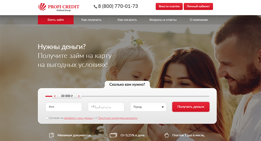 Profi Credit – микрофинансовая компания, работающая на российском рынке и в Восточной и Центральной Европе. Предлагает оформить займ без проверок с минимумом требований и формальностей. Гарантирует низкие процентные ставки, гибкие сроки и возможность досрочного погашения без штрафных санкций. Для решения текущих задач можно пользоваться телефоном горячей линии Profi Credit и личным кабинетом.
