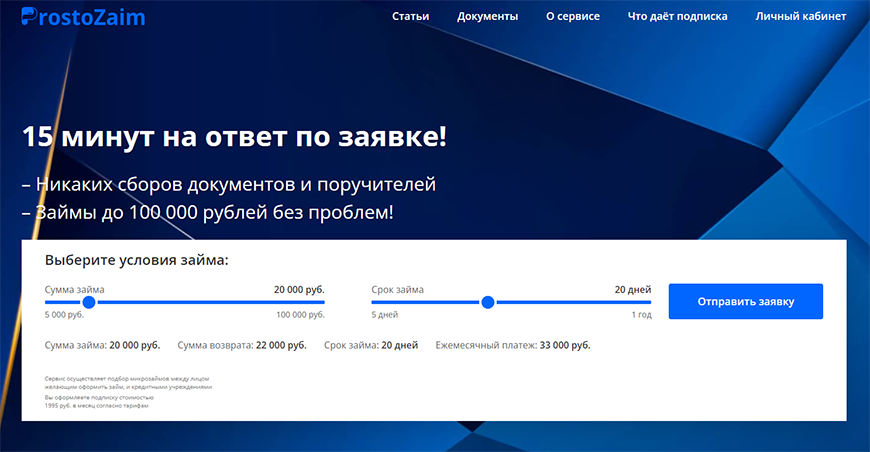 ProstoZaim - сервис, предлагающий краткосрочные микрозаймы онлайн. Компания предоставляет услуги поиска организаций, способных выдать микрокредиты на разные цели, включая покупку товаров, оплату счетов, путешествия и другие нужды. Процесс получения займа через МФО прост, требует минимальных документов и осуществляется через онлайн-форму на их веб-сайте или приложение. Пользователи услуг после подключения подписки могут получать решение сразу от нескольких МФО. Удобнее всего управлять сервисом через личный кабинет.