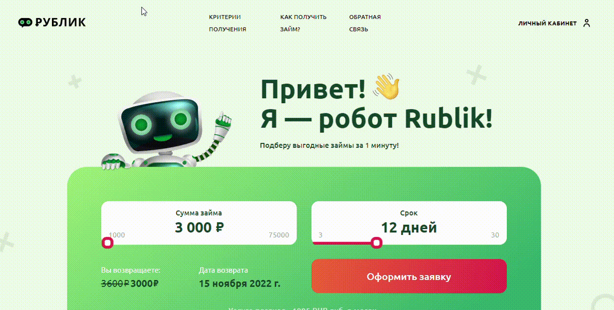Здесь можно посмотреть как зарегистрироваться и войти в личный кабинет Рублика, как получить, оплатить или продлить займ.