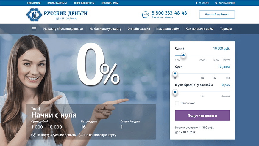 АМФО Русские деньги выдает микрозаймы онлайн физическим лицам по паспорту. Подать заявку можно онлайн, а получить нужную сумму на банковскую карту.