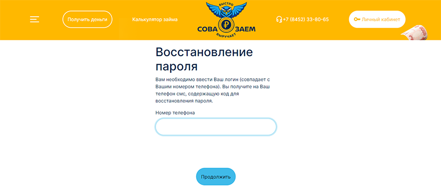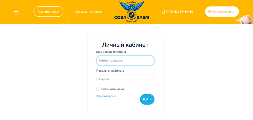 Здесь можно посмотреть как зарегистрироваться и войти в личный кабинет СоваЗаем для получения займов, как оплатить или продлить займ.