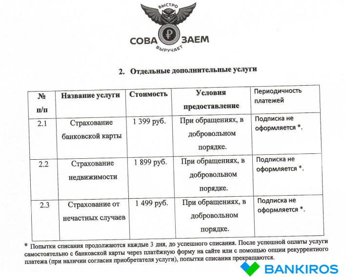 Какие дополнительные платные услуги есть в СоваЗаем?