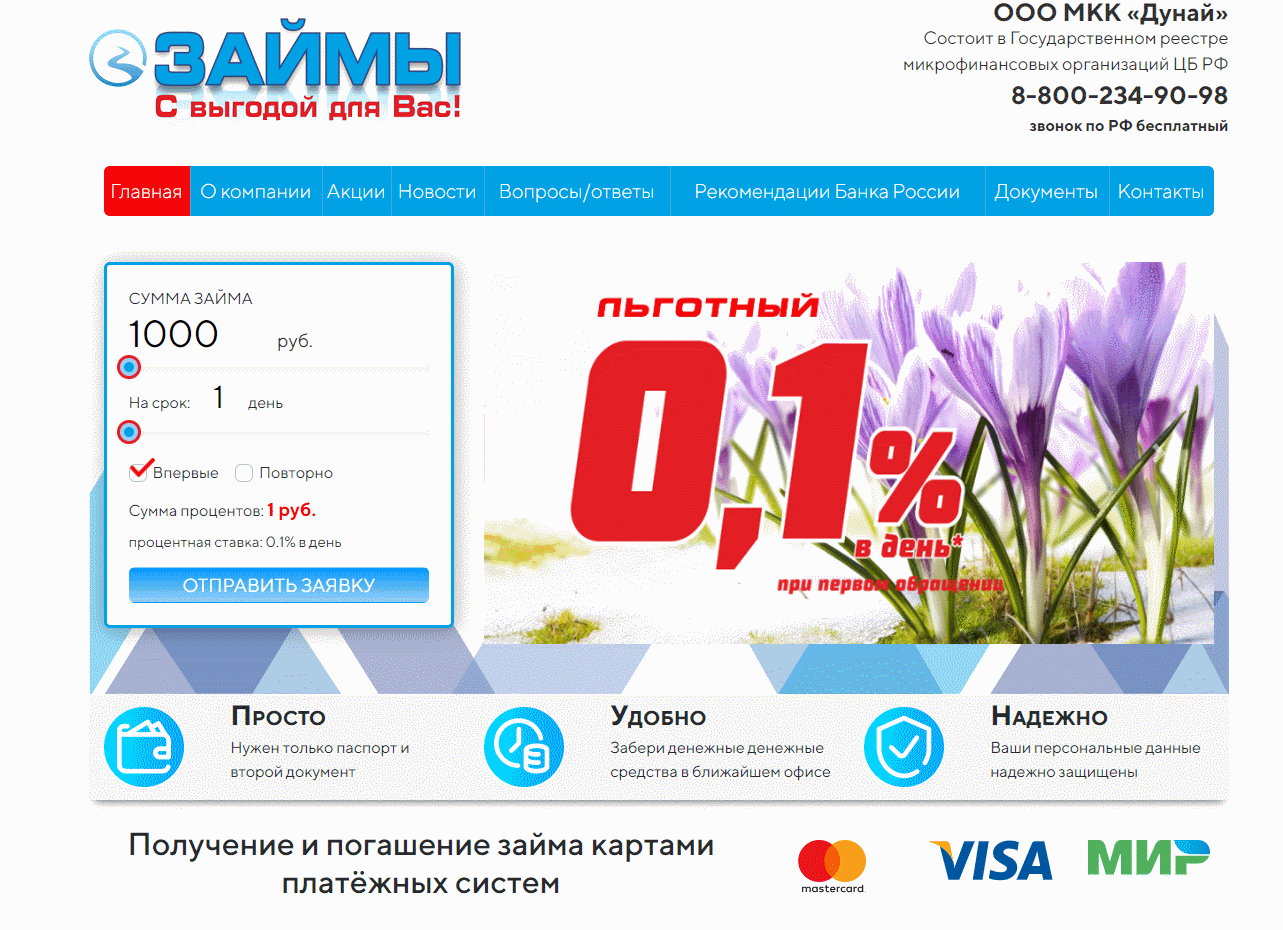 Здесь можно посмотреть как зарегистрироваться и войти в личный кабинет ООО МКК «ДУНАЙ» для получения займов, как оплатить или продлить займ.