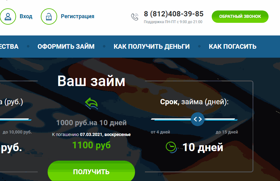 Здесь можно посмотреть как зарегистрироваться и войти в личный кабинет Денег в кармане для получения займов, как оплатить или продлить займ.