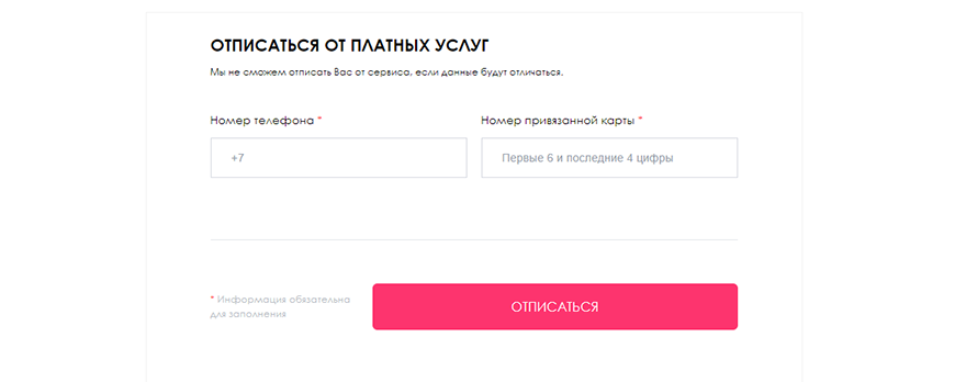 Если вы столкнулись с недобросовестной компанией и хотите получить помощь в отписке от платных услуг, то нажмите на кнопку «Отписаться».