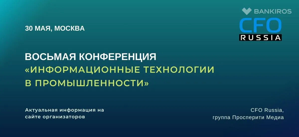 30 мая в Москве состоится Восьмая конференция «Информационные технологии в промышленности», организованная группой «Просперити Медиа» и порталом CFO-Russia.ru.