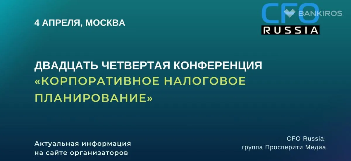4 апреля в Москве состоится Двадцать четвертая конференция «Корпоративное налоговое планирование», организованная группой «Просперити Медиа» и порталом CFO-Russia.ru