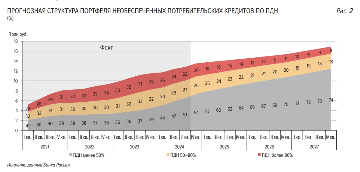 «Для банков сегодня это актуально и важно потому, что в общей структуре кредитов у организации может быть, например, 20% кредитов с ПДН выше 80%. К концу 2027 года это значение сократится до 8%», – поясняет product-менеджер кредитного направления Bankiros.ru, оценивая данные Банка России.