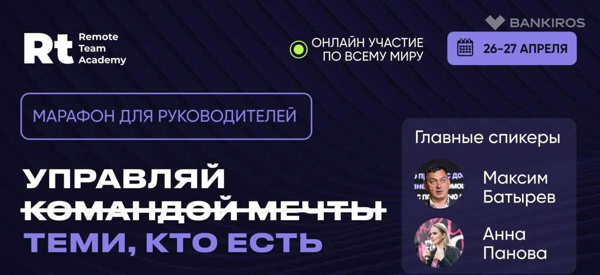 26-27 апреля пройдет бесплатный онлайн-марафон для руководителей от академии №1 для руководителей (РБК-Тренды и GC). Главные спикеры марафона - Максим Батырев и Анна Панова