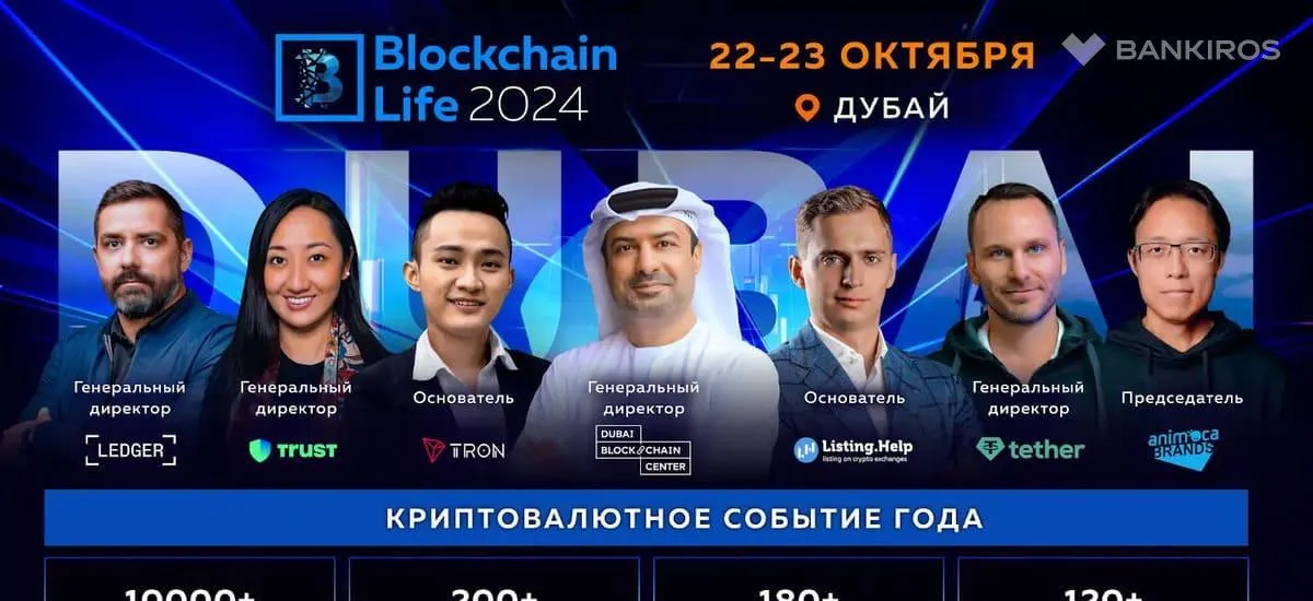 22-23 октября в Дубае состоится легендарный форум Blockchain Life 2024. Более 10,000 человек из 120 стран встретятся на крипто событии года для обмена инсайдерской информацией накануне буллрана 2025.