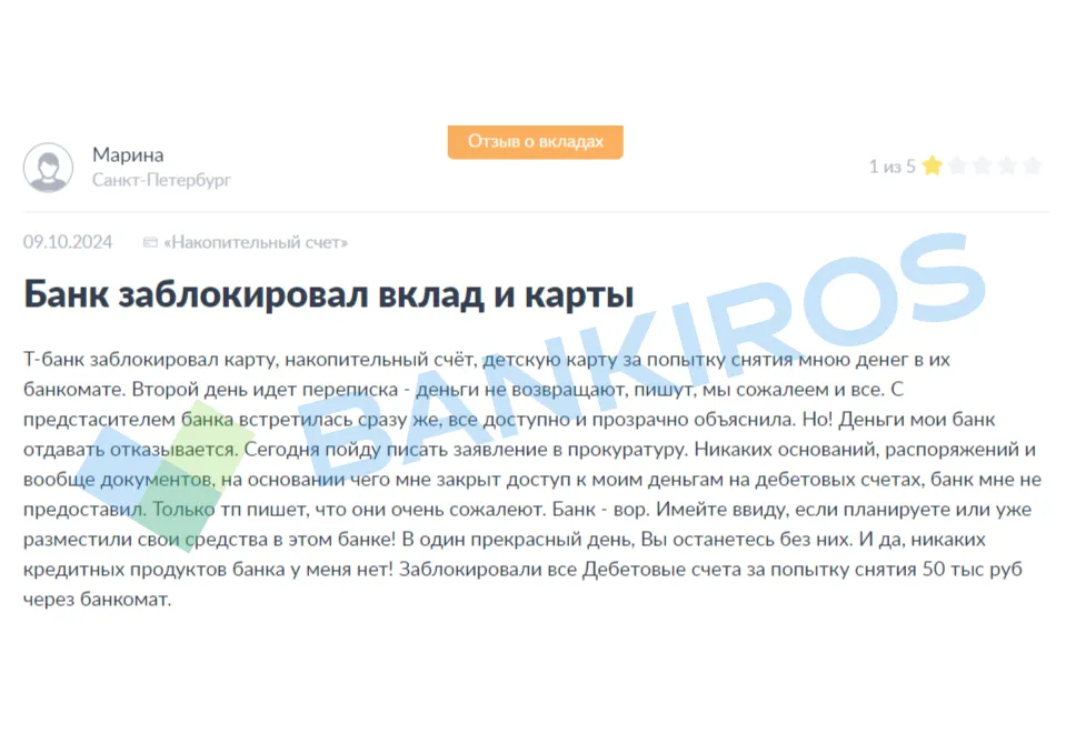 - Жительница Санкт-Петербурга пожаловалась на Т-Банк, который за попытку снятия 50 тысяч рублей в банкомате заблокировал все карты и накопительный счет.