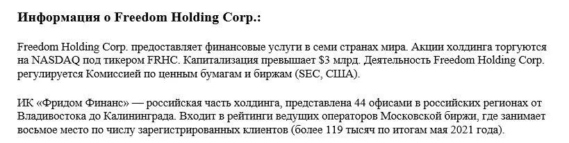 марта 2021 года в Freedom Holding Corp. было открыто более 290 тысяч клиентских