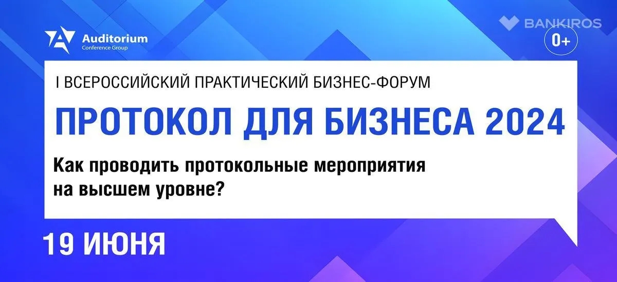 19 июня в Москве состоится I Всероссийский практический бизнес-форум «ПРОТОКОЛ ДЛЯ БИЗНЕСА 2024», посвященный проведению протокольных мероприятий на высшем уровне.