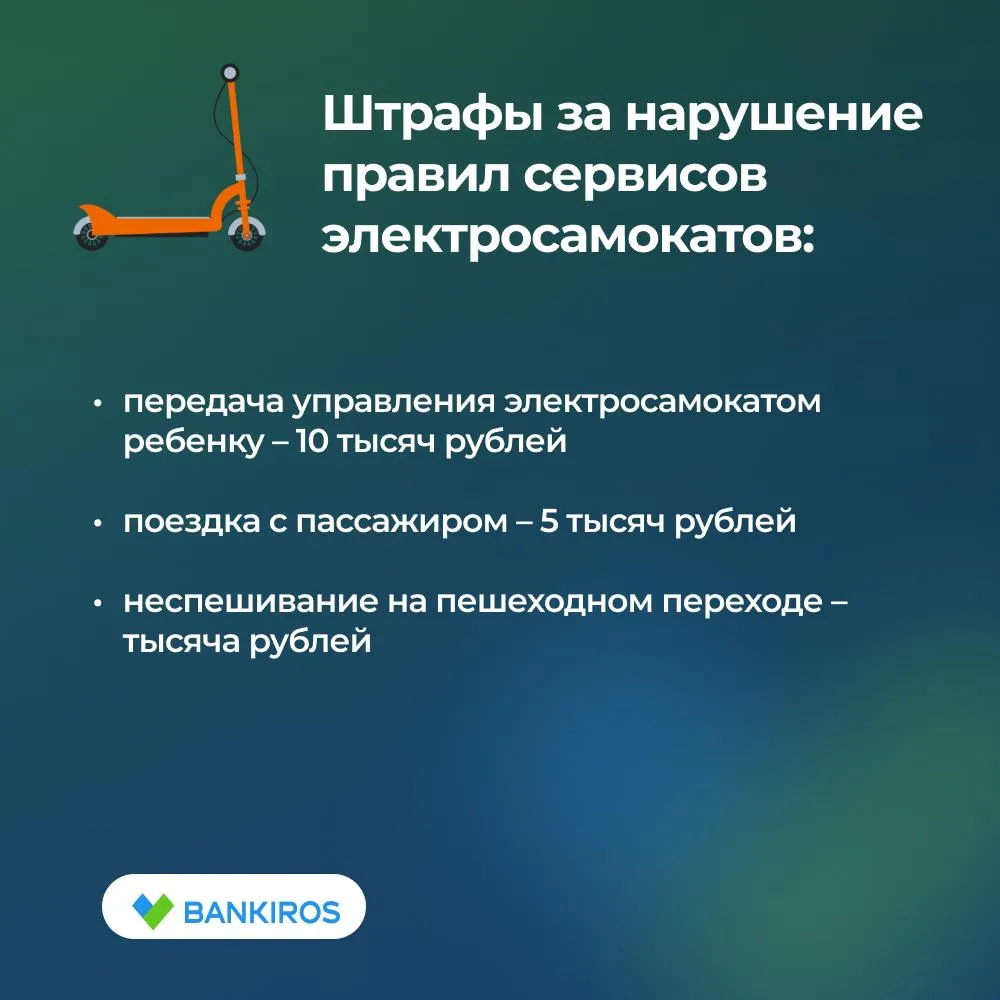 - 10 тысяч рублей за передачу управления электросамокатом ребенку;