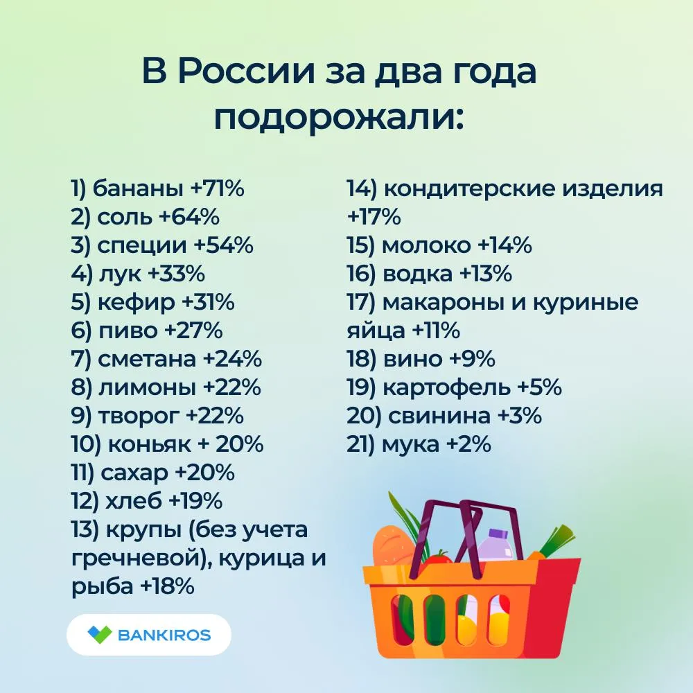По некоторым категориям только ожидается повышение стоимости. Например, стало известно о повышении цен на гречку, лекарства, путевки, алкоголь, квартиры, бытовую технику, шоколад, вино, сигареты, кофе, соки и газировки, такси, связь и т.д., перечисляет телеграм-канал Bankiros.ru.
